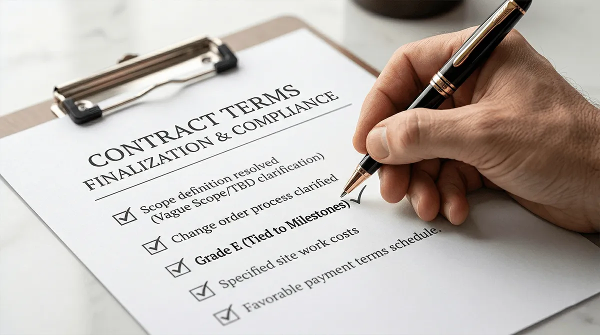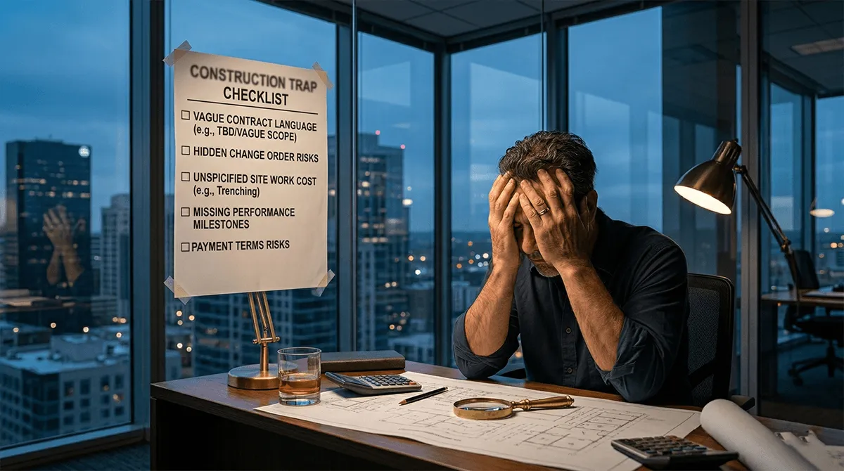 The most common point of budget overrun. Hidden utility costs, soil conditions, grading surprises. How to protect yourself contractually before this phase begins.